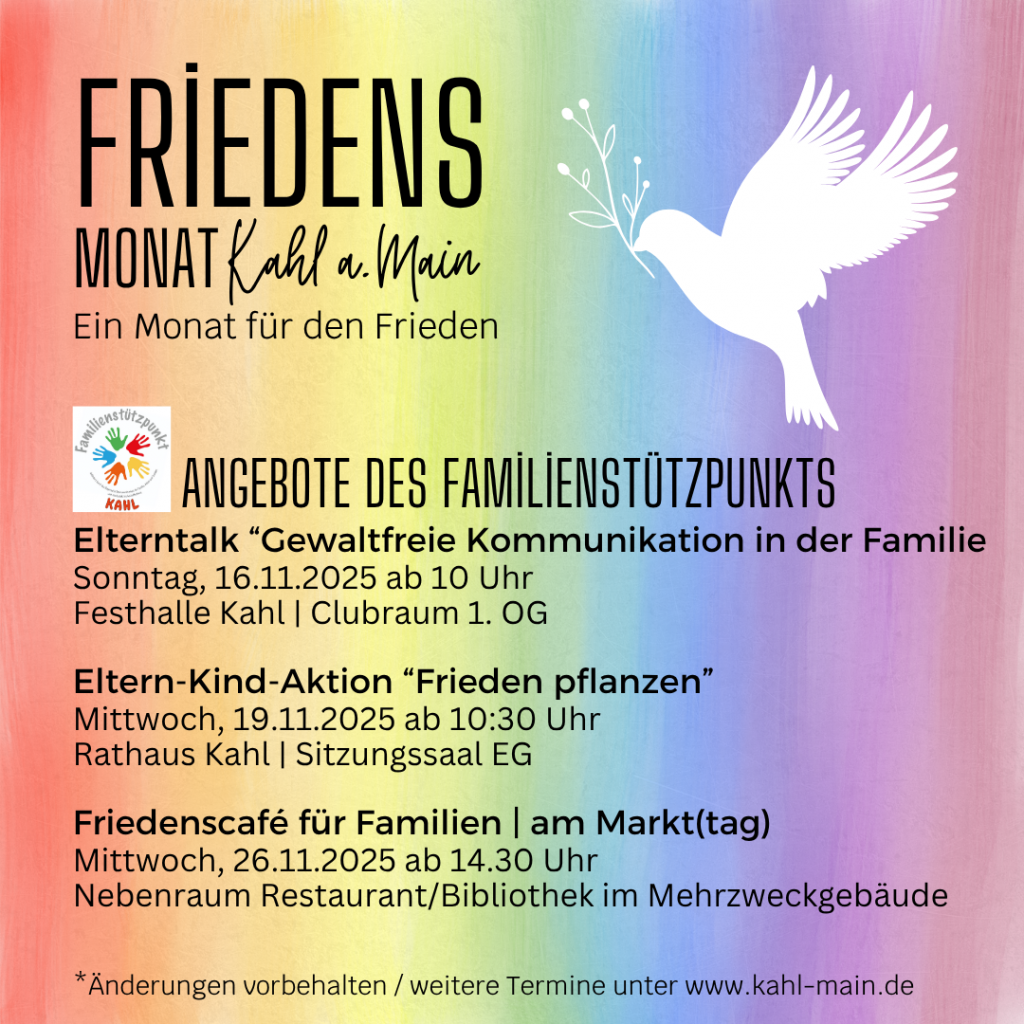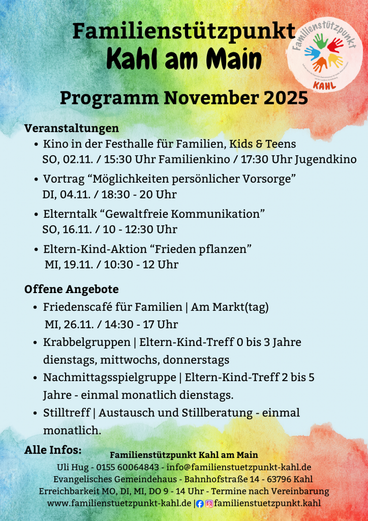 Willkommen beim Familienstützpunkt Kahl am Main – eure Anlaufstelle für Familienfragen, Unterstützung und Austausch. Egal ob Beratung, Eltern-Kind-Angebote oder einfach ein offenes Ohr – der FSP ist für euch da!